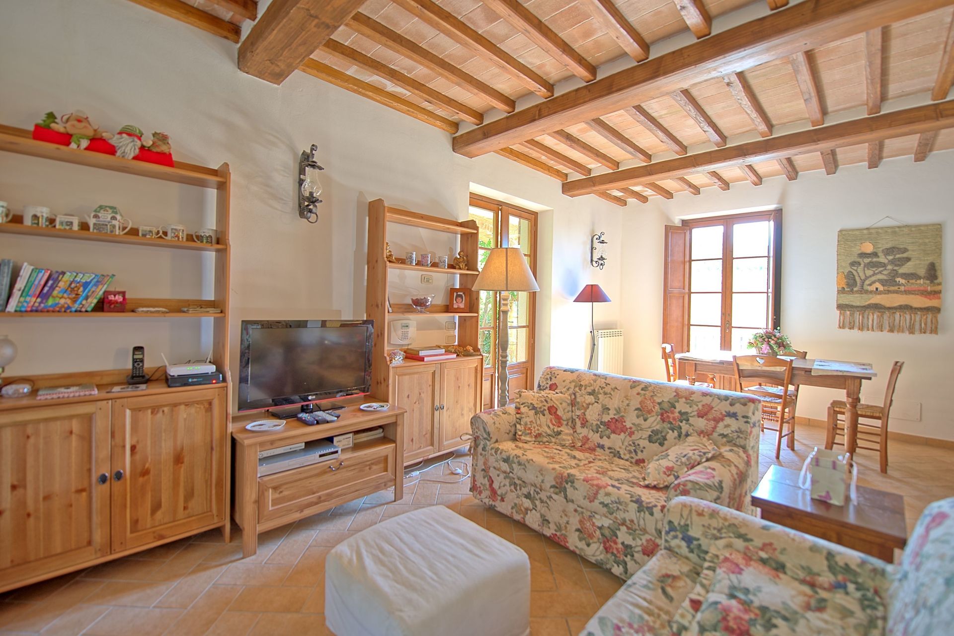 This property offers a panoramic view over Chianti area and guarantees privacy and comfort as well as a swimming pool and a large garden with a barbecue area. The interiors are tastefully furnished using materials from Tuscany.